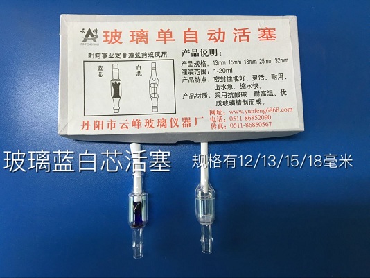 制藥廠水針劑,小針,中針,聯(lián)動線,口服液等安瓿拉絲灌封機用的重要裝置,是灌封生產(chǎn)中:進藥回藥,解決安瓶裝量不準,不穩(wěn),防止焦頭碳化,精確灌裝的關鍵部件,此玻璃單自動活塞裝置規(guī)格有:12mm,13mm。 15mm。18mm。25mm。30mm等,采用硬質(zhì)玻璃料,高溫燒制,耐高溫,防腐蝕,密封性能好,進液回藥靈活,經(jīng)久耐用等特點。